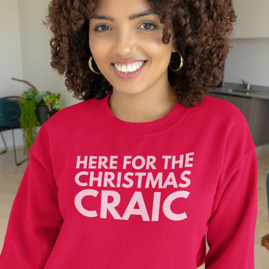 Here for the Christmas Craic Sweatshirt in Pink (Red Text)