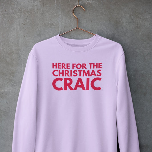 Here for the Christmas Craic Sweatshirt in Pink (Red Text)